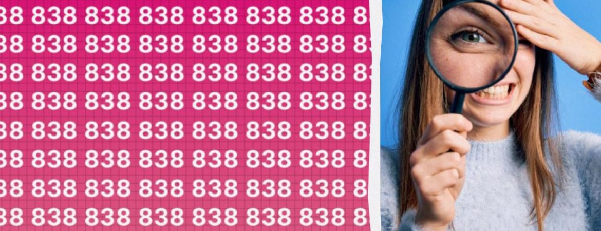 Na różowym tle znajdują się dziesiątki cyfr 838. Wszystkie są takie same z wyjątkiem jednej. Musisz uważnie przyjrzeć się rzędom i znaleźć tę specjalną liczbę.