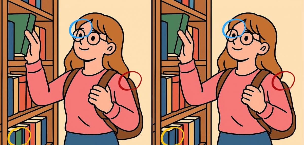 Czy jesteś gotowy na kolejne wyzwanie? Przyjrzyj się uważnie dwóm zdjęciom dziewczyny wybierającej książki w bibliotece. Na pierwszy rzut oka mogą wyglądać tak samo, ale istnieją 3 małe różnice. Myślisz, że jesteś w stanie znaleźć je wszystkie w 19 sekund? Spróbuj i sprawdź swoją ostrość widzenia!