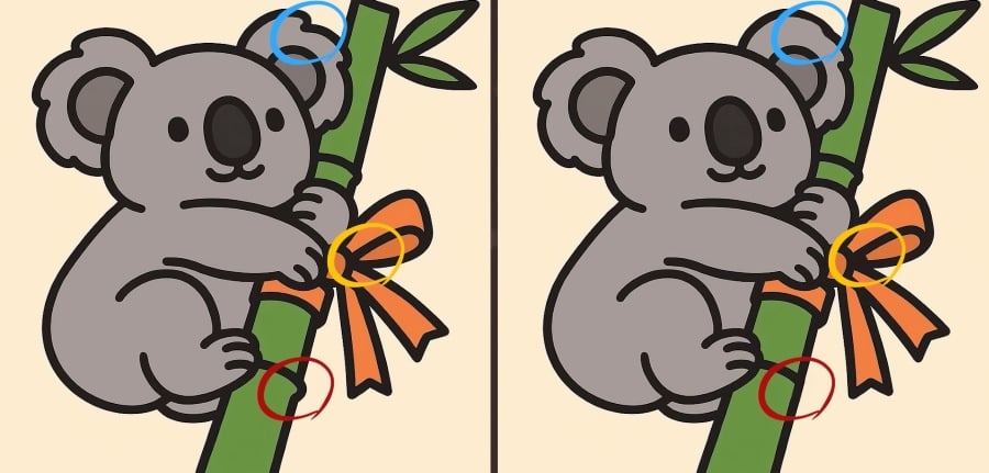 Czy jesteś gotowy na kolejne wyzwanie? Przyjrzyj się uważnie dwóm zdjęciom koali przytulającego się do bambusa. Na pierwszy rzut oka mogą wyglądać tak samo, ale istnieją 3 małe różnice. Myślisz, że znajdziesz je wszystkie w 33 sekundy? Spróbuj i sprawdź swoją ostrość widzenia!