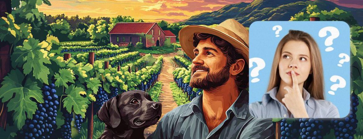 Poniżej znajduje się obraz winnicy, w której mężczyzna zbiera winogrona. W pobliżu znajduje się jego wierny pies, który nigdy nie zostawia swojego właściciela samego. Wydawałoby się, że co tu może być niezwykłego?