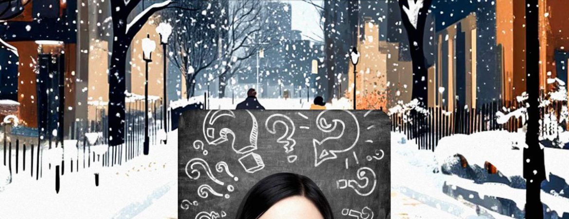 Poniżej znajduje się obraz zaśnieżonego miasta, po którym spaceruje para z małym dzieckiem w wózku. Wszystko wokół jest pokryte śniegiem, ale coś jest nie tak na tym zdjęciu.