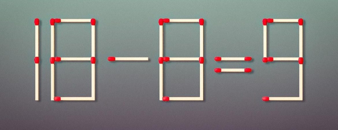 Poniżej zobaczysz obrazek, na którym równość 18-8=9 jest ułożona za pomocą zapałek. Oczywiście jest to matematycznie niepoprawne, ponieważ różnica tych liczb powinna wynosić 10.