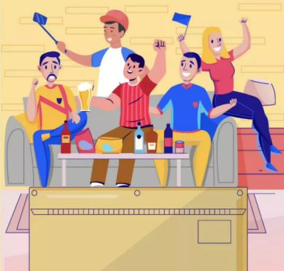 2. Brakuje panelu na ścianie obok mężczyzny w biało-niebieskiej koszulce.